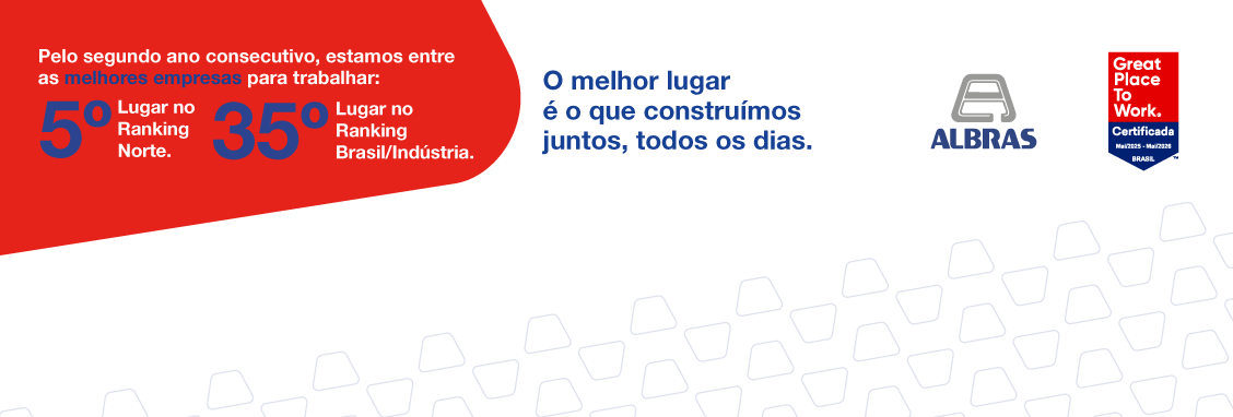 A Albras foi reconhecida pela Great Place to Work (GPTW) como a 5ª melhor empresa para trabalhar na região Norte e alcançou a 35° posição do ranking Brasil/Indústria, entre as 50 melhores empresas pra se trabalhar no país em 2025.